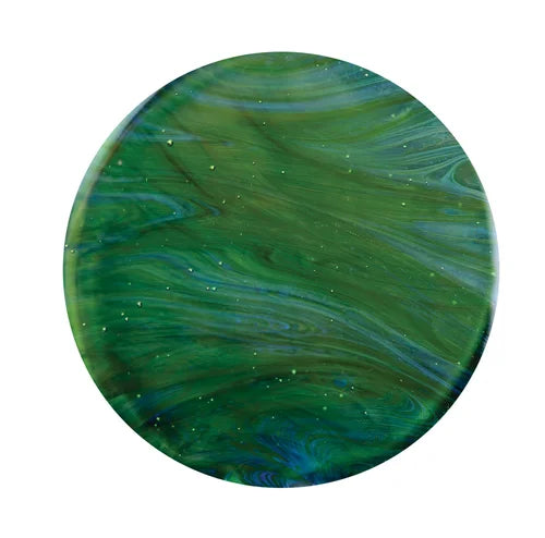 MB046 Green Envy is a very rich transparent green that develops faint wispy blue under strong oxidizing flame. Neutral flame to surface color tends to opacify while interior color surfaces develop a range of colors from tan to blue. Careful not to reduce, it will give an opaque red to exposed surfaces.