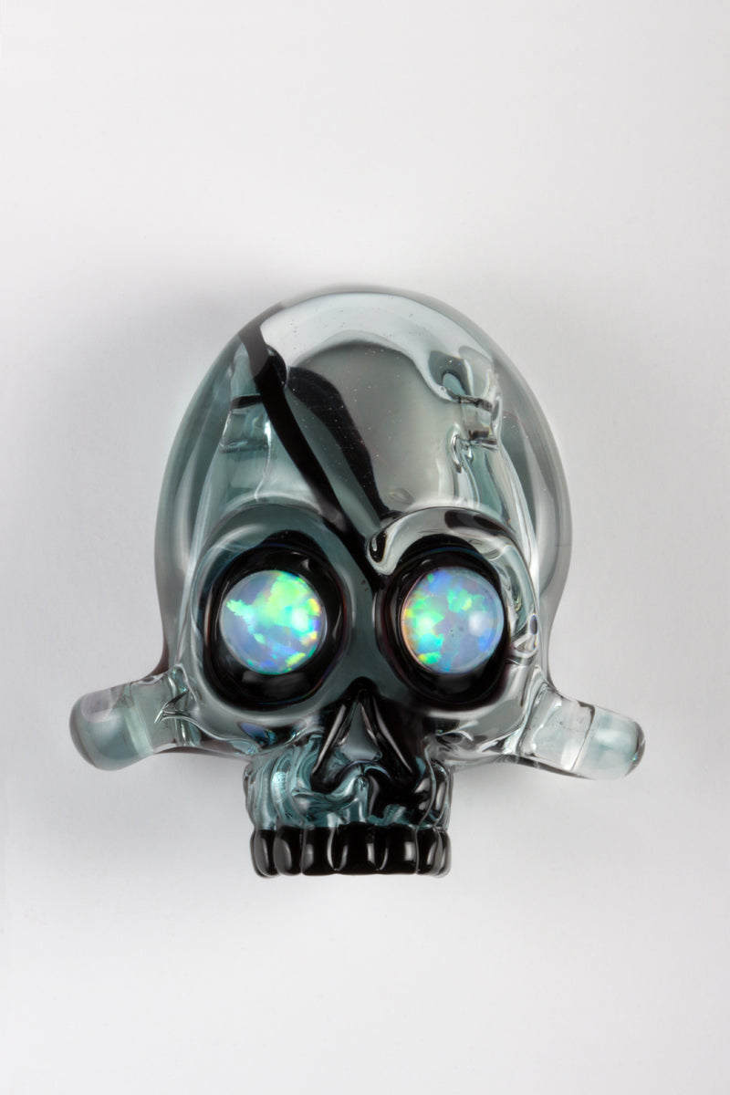 NS-070 Ice Blue is a lush copper blue that has eye catching appeal. It is a light transparent color but it adds great optical depth even in thin layers. It is not suitable for stringers or cane work, but it is great for sculpture and blown work. Its effect as an overlay color is impressive.