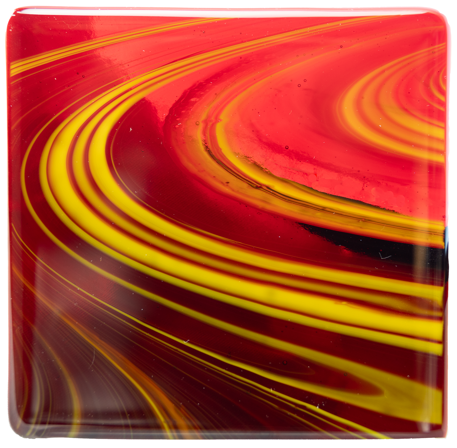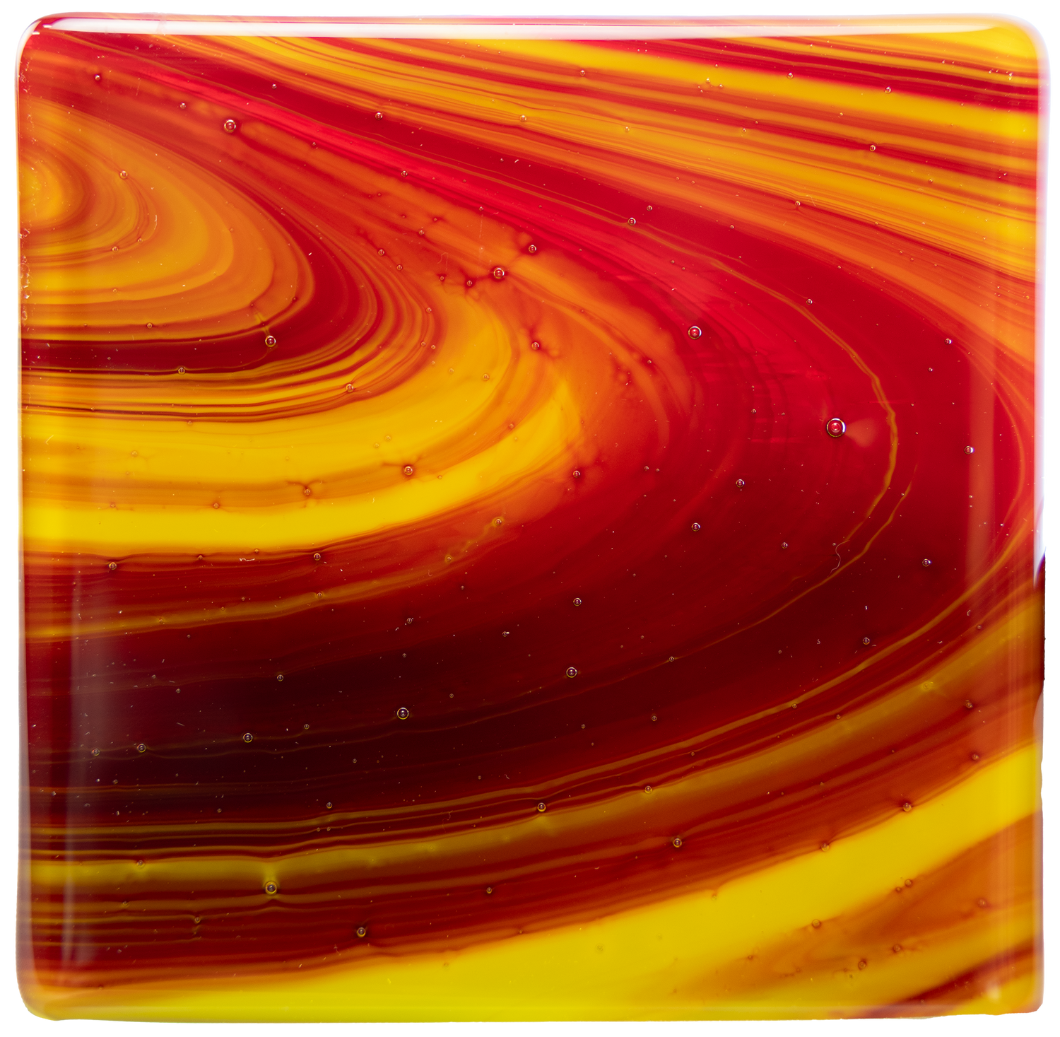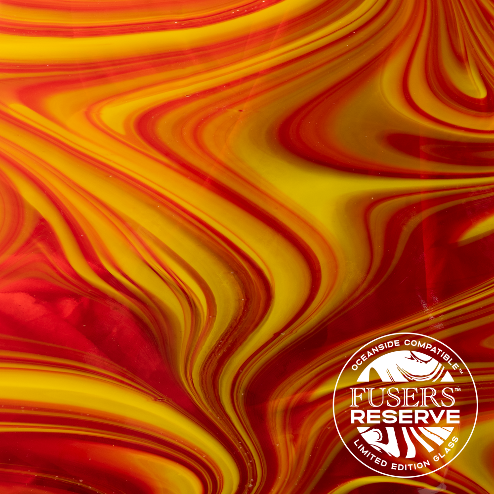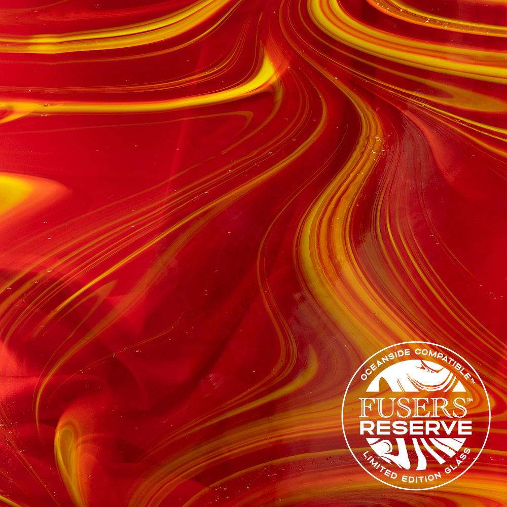 This new fusible Oceanside glass, Antelope Canyon, features a vivid OpalArt stir of Cherry Red Transparent with Sunflower Opal. This captivating combination was inspired by Lake Powell with its glowing canyon walls. This new color was made in limited supply, so be sure to stock your stash quickly!