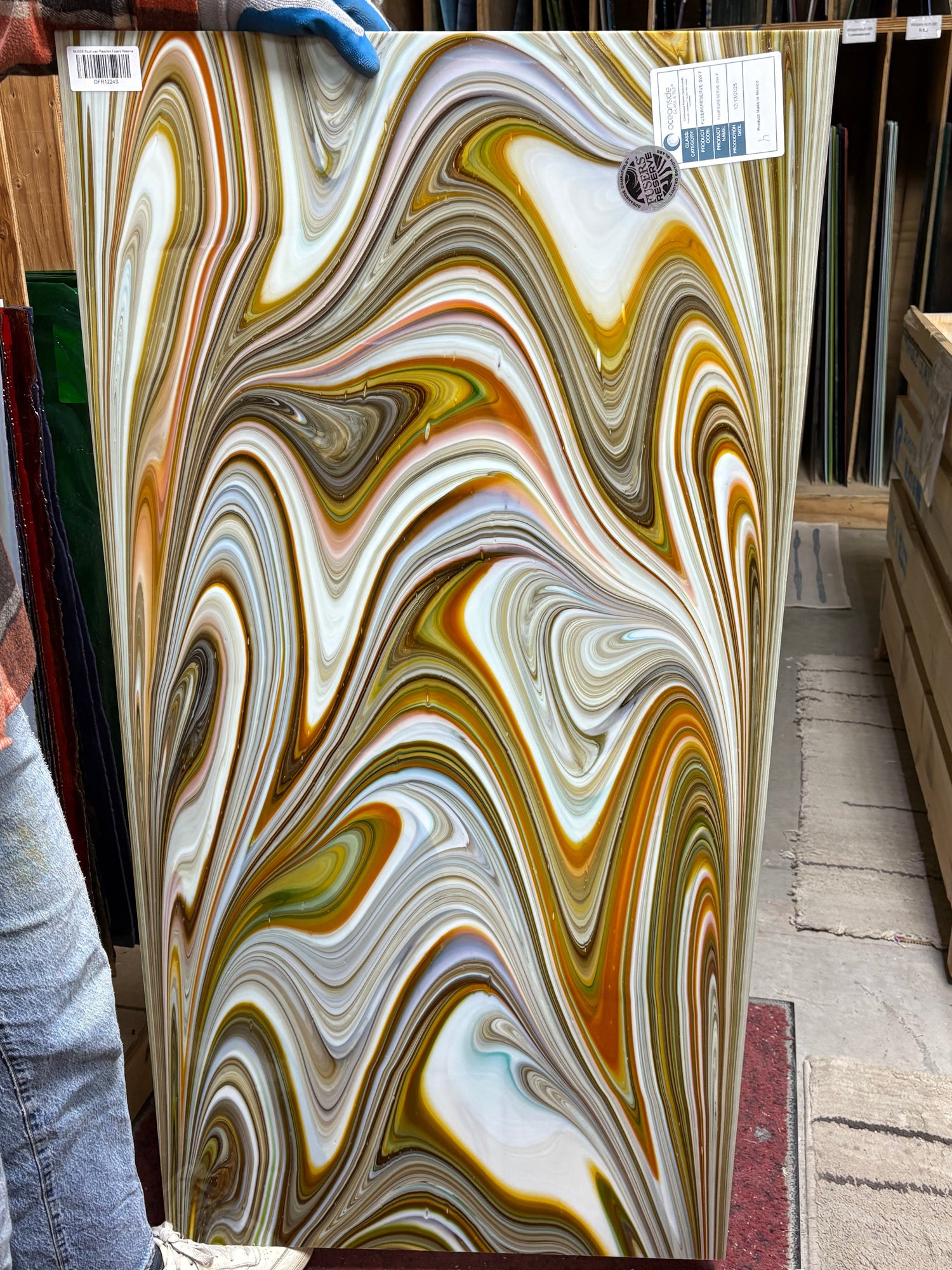 Because this glass varies so wildly, please see the two full sheet pictures of glass we recently got it. Last photo from Heidi H for Flaunt Your Glass 2025