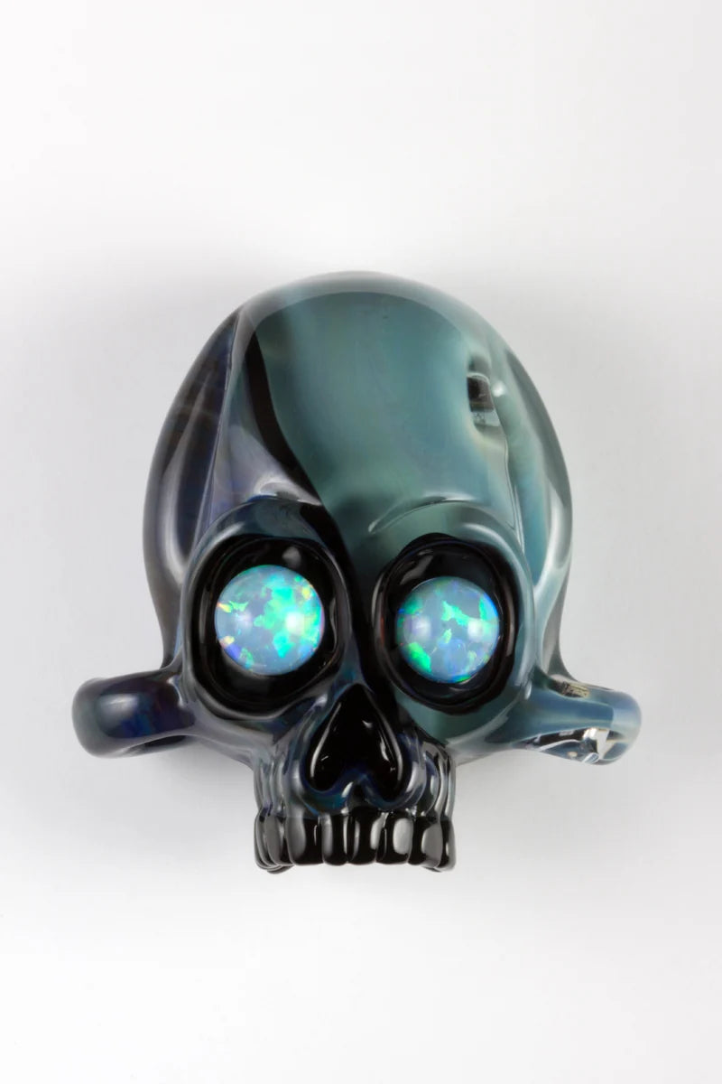 NS-122 is a dark cobalt blue color with silver. When worked in an oxidizing flame, Blue Thunder yields bright metallic blues. When worked in a neutral flame it yields bright hazy greens. When worked in a heavily reducing flame, it produces a nice ash gray. It is well suited for stringer application, blown work and sculpture. Blue Thunder is a lighter version of Blue Moon with the same working values.