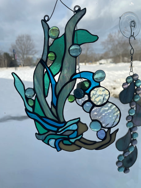 Katherine was born and raised on the coast of Maine and has 40 years experience with stained glass. She has worked with clients across Maine and New Hampshire to create one-of-a-kind panels for residences, restaurants, and churches. Katherine will work with your colors, photos, and design ideas to build a custom piece for you. This is a selection of her work that is available for sale online and more in her gallery at Stained Glass Express.
