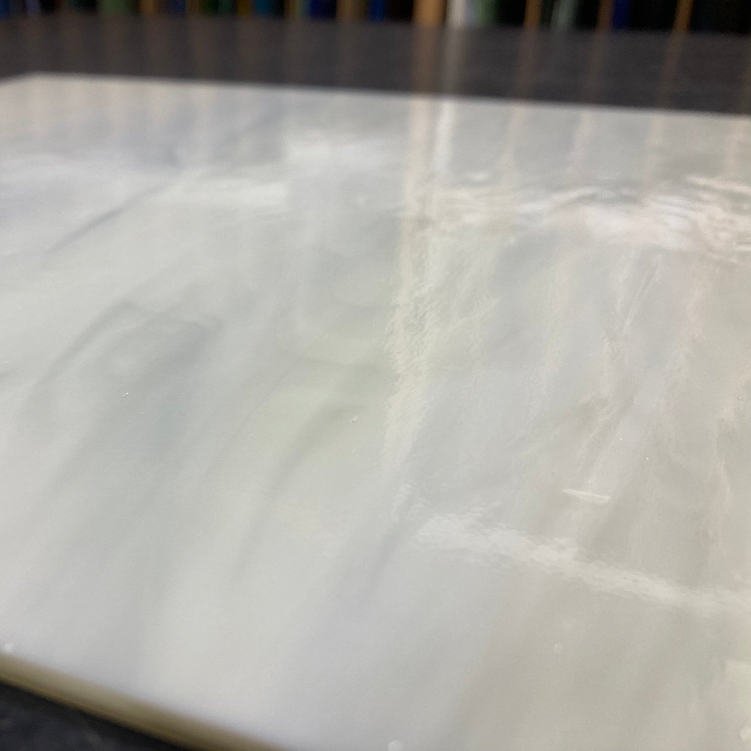 Clear/Ivory Smooth Fusible glass combines the clarity of transparent glass with the soft warmth of ivory, producing a primarily opalescent sheet that emits a gentle, glowing effect. The translucence of the clear component allows light to pass through subtly, enhancing the depth and luminosity of your fused glass projects. This smooth fusible glass is compatible with a variety of glass types, making it a versatile choice for intricate kiln work and layered designs. Its balanced color blend offers both elegance and versatility, ideal for artists seeking refined, luminous effects in their stained glass or fused creations.